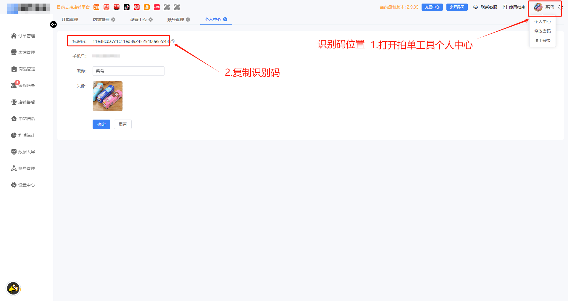 .关联拍单软件识别码